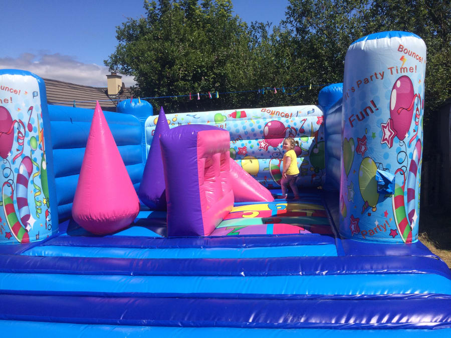 The Blue Bouncer bouncy castle is very popular at parties for younger children, smaller spaces or as a surprise extra at a garden wedding. The bouncy castle is bright and colourful with a fun celebration design that’s gender neutral and has been enjoyed at events all around Kerry.